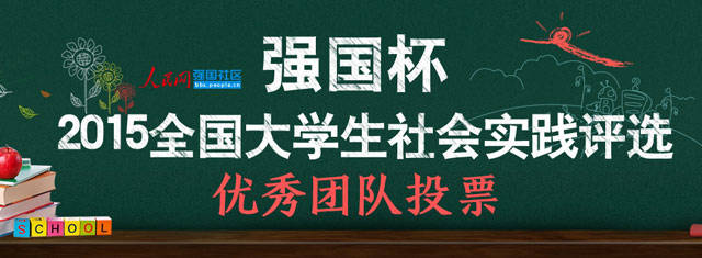 為勉勵廣大青年認(rèn)真學(xué)習(xí)習(xí)近平總書記關(guān)于弘揚(yáng)真善美、傳播正能量的講話精神,引導(dǎo)大學(xué)生積極參與社會實踐,在志愿服務(wù)過程中獲得鍛煉與成長,在共青團(tuán)中央學(xué)校部、人民日報社政文部指導(dǎo)下,人民網(wǎng)以強(qiáng)國論壇為平臺舉辦“強(qiáng)國杯”2015全國大學(xué)生社會實踐評選活動。活動吸引了各大院校和廣大學(xué)生的熱情參與,共有500多所院校的數(shù)千個團(tuán)隊報名,組委會從中選出200個團(tuán)隊正式入圍并展開網(wǎng)絡(luò)投票。