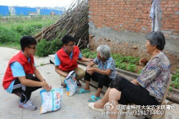 高校志愿團隊不僅幫助留守兒童健康成長,也幫助孤殘老人重新燃起對生活的美好希望。青島農業大學筑愛圓夢服務團和河南科技大學留守老人關愛團同時都在關注農村孤殘老人的生活,老人們十分需要關愛和溫暖。志愿者們深入老人家中走訪談心,耐心地為老人答疑解惑、做家務,還為留守老人們送去實用的生活用品,叮囑他們注意身體。在力所能及幫老人做些事情的同時,同學們也在不斷呼吁更多的社會愛心人士去關注他們、幫助他們。