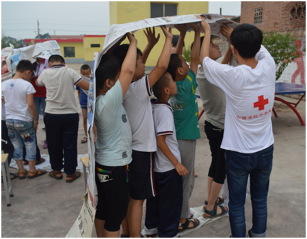實踐隊隊員給社區青少年講解了火災、臺風、洪水等自然災害的相關知識,設計火場逃生、地震躲避、你畫我猜等6個以防災減災知識為基礎的趣味闖關項目,在趣味運動會中,以競技運動的方式讓孩子們感受自然災害,學會災害自救,收獲知識與成長,進一步開啟全民運動熱潮。