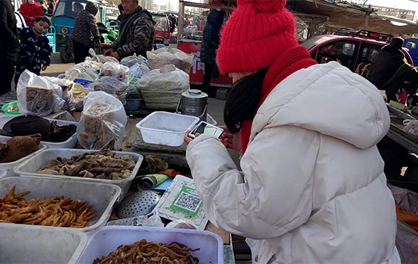 “小伙子,手機(jī)帶了嗎?掃一掃,你就用微信付款吧!”這是攤販大爺?shù)穆曇簟=K徐州市豐縣的“閆家小旭”對(duì)家鄉(xiāng)集市上菜攤前的二維碼,頗為吃驚,不敢相信。她說:“不到一年時(shí)間,發(fā)現(xiàn)家鄉(xiāng)變化真得好大。中國特色社會(huì)主義‘走進(jìn)新時(shí)代’,農(nóng)村里的樓房越蓋越高,院子也越來越寬敞。鄉(xiāng)間小道變成平整寬闊的水泥路,飛奔的火車也通往家鄉(xiāng)。手機(jī)支付走進(jìn)鄉(xiāng)間集市攤販,西紅柿、茄子、黃瓜、豆角等反季節(jié)蔬菜也成為春節(jié)餐桌上的家常菜。”