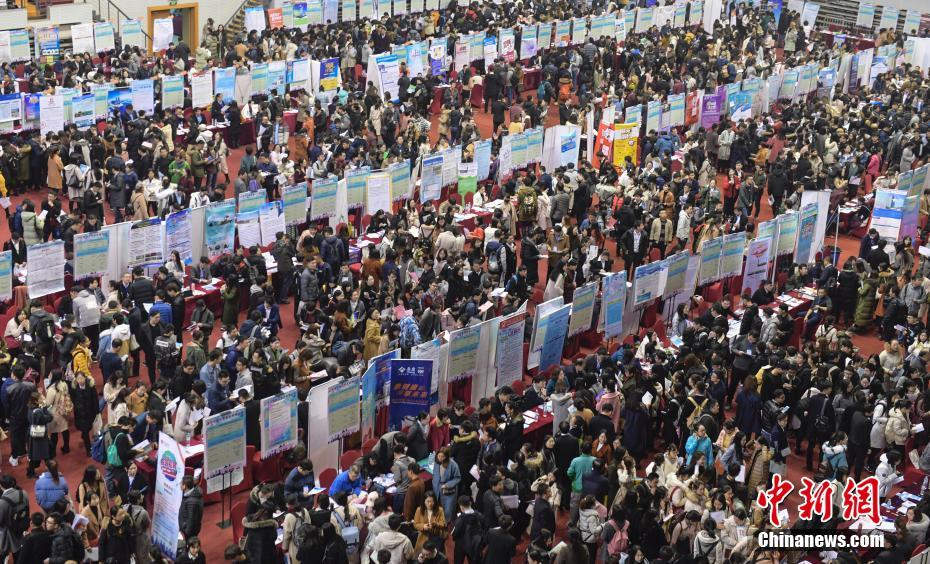 山東大學(xué)2019屆畢業(yè)生就業(yè)“雙選會”吸引眾多大學(xué)生前來應(yīng)聘。(中新網(wǎng))