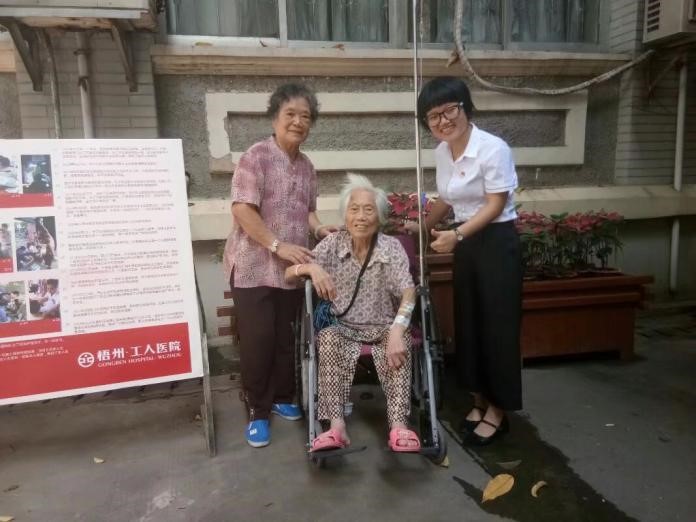 “孩子,我不能在福利院住了,我沒有地方去了。”黃奶奶抹著眼淚說。原來黃奶奶年事已高,需要親屬作為擔(dān)保人與社會福利院簽訂入院協(xié)議才能入住。但黃奶奶與孩子的關(guān)系并不好——在梧州生活的大兒子不愿照顧黃奶奶,也不愿為黃奶奶簽訂入院協(xié)議;小兒子則遠(yuǎn)在上海,常年不回梧州。因此,黃奶奶無法辦理合法合規(guī)的社會福利院入住手續(xù)。