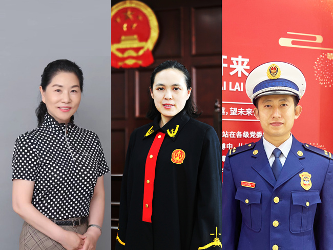從左到右依次為全國最美信訪干部、北京市豐臺區信訪辦公室二級巡視員王凱,北京市朝陽區人民法院南磨房人民法庭副庭長、四級高級法官付艷,北京市朝陽區消防救援支隊奧林匹克公園特勤站副指導員、三級指揮員仇志宏